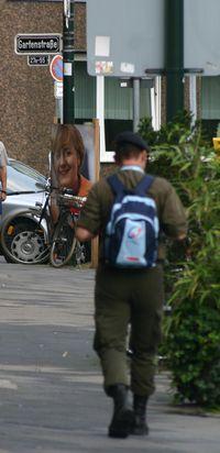 [die militarisierung der christenheit: deutschlands führender kämpferin gegen den islamistischen terror gefällts schon.]und nur manche schleppen eine verstimmte wandergitarre mit sich rum. und das der spanische smarty mit carhartt shirt und sonnenbrille sich nicht gleich an die minirock-barbie aus kalifornien ranschmeisst liegt ausserhalb meiner vorstellungskraft. aber die ist beschränkt und vielleicht heiraten sie ja vorher auch noch.